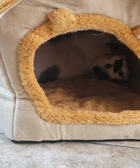 Watch as your pet cozies up inside the Cuddle Cave Pet Bed, enjoying the warmth and security it offers for peaceful rest.