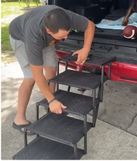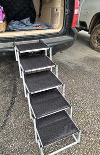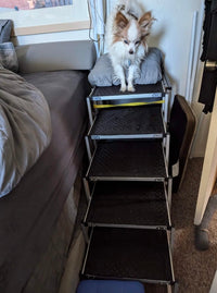 The foldable pet staircase makes life easier for both you and your dog. With a sturdy frame and anti-slip steps, it gives pets of all sizes a safe and stress-free way to climb into cars, onto beds, or furniture. Lightweight, portable, and folding flat for easy storage, StepPaws™ is perfect for senior dogs, smaller pups, or pets that need extra support—making every trip easier, safer, and more enjoyable.