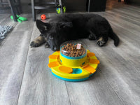 Slows down fast eaters by requiring them to solve puzzles for their food, promoting better digestion.