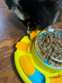 Combines unique puzzle challenges to keep your dog engaged while they eat.
