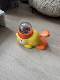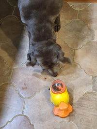 Your dog presses the duck’s tail, which releases kibble from the dispenser, turning mealtime into an interactive game.