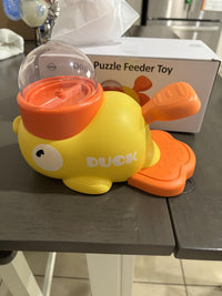 How does the Quack & Snack Puzzle Feeder work?